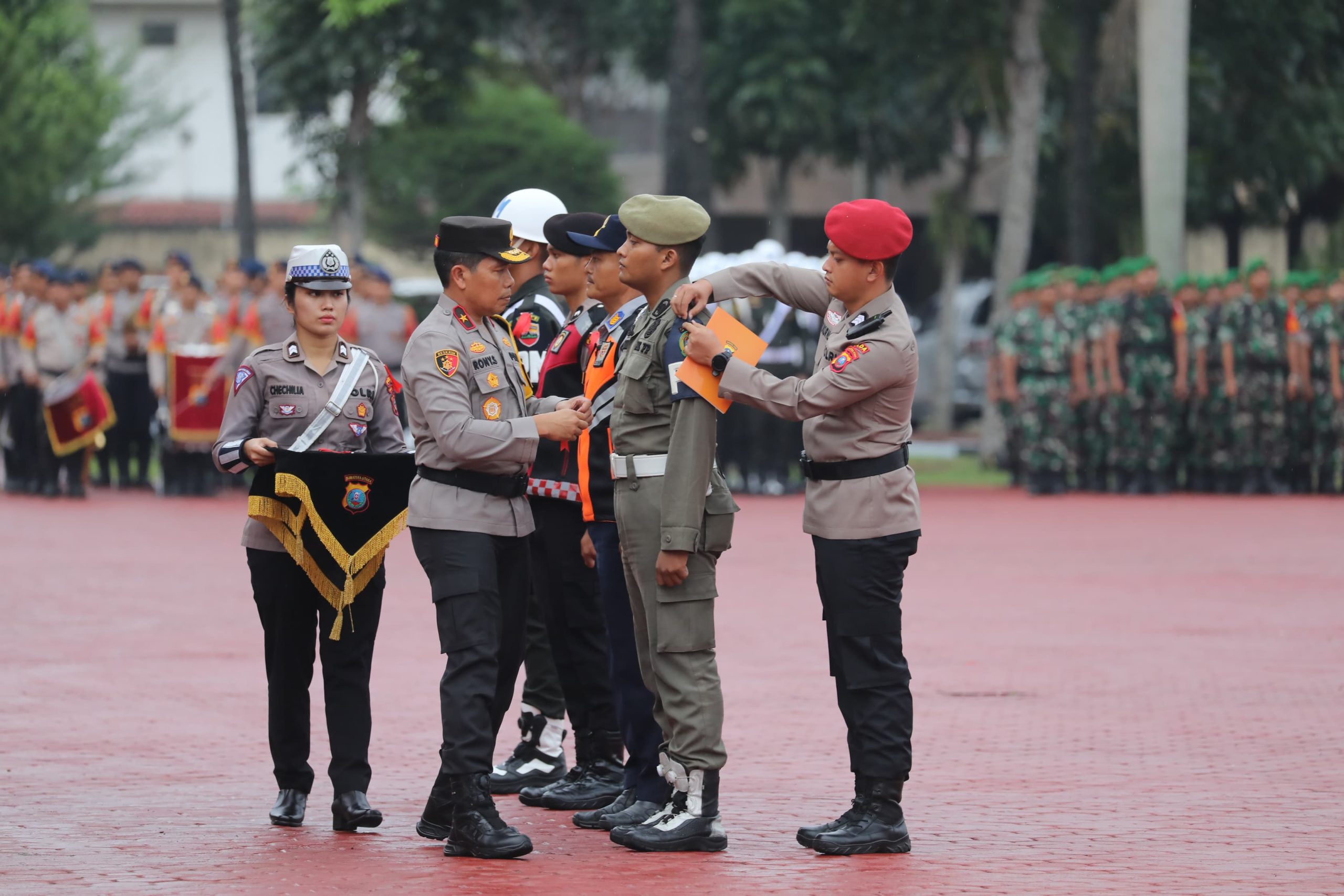 MetropolitanPost.id – Komandan Pangkalan Utama TNI Angkatan Laut I (Danlantamal I) Brigjen TNI (Mar) Jasiman Purba, S.E., CHRMP., diwakili Kasihartib Pom Lantamal I Mayor Laut (PM) Denny Suwondo beserta berbagai satuan dan instansi terkait menghadiri Apel Gelar Pasukan Operasi Kepolisian HATRA TOBA-2024, dalam rangka kesiapan pengamanan Pekan Olahraga Nasional (PON) XXI Tahun 2024 di wilayah Provinsi Sumatra Utara, dipimpin oleh Wakapolda Sumut Brigjen Pol Rony Samtana, S.I.K., M.T.C.P., bertempat di Lapangan K.S. Tubun Mapolda Sumut, Jalan Sisingamangaraja, Medan, Sumatera Utara, Jumat (23/8/2024).