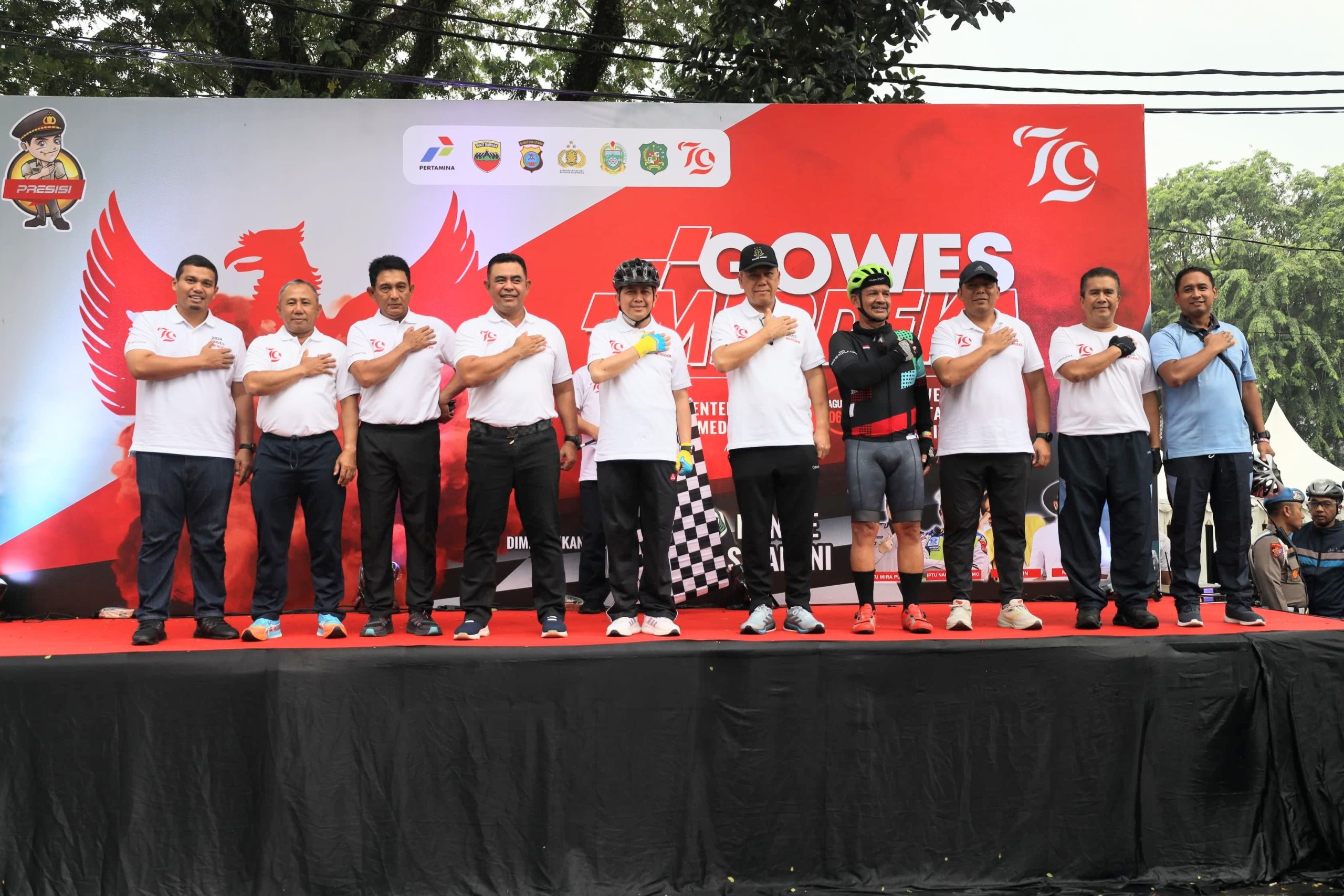 MetropolitanPost.id – Komandan Pangkalan Utama TNI AL I (Danlantamal I) Brigjen TNI (Mar) Jasiman Purba, S.E., CHRMP., beserta Forum Koordinasi Pimpinan Daerah (Forkopimda) Sumatera Utara menghadiri kegiatan melepas Gowes Bhayangkara Merdeka dalam rangka Hari Ulang Tahun Ke-79 Kemerdekaan Republik Indonesia, bertempat di Lapangan Benteng, Medan, Sumatera Utara, Minggu (18/8/2024).