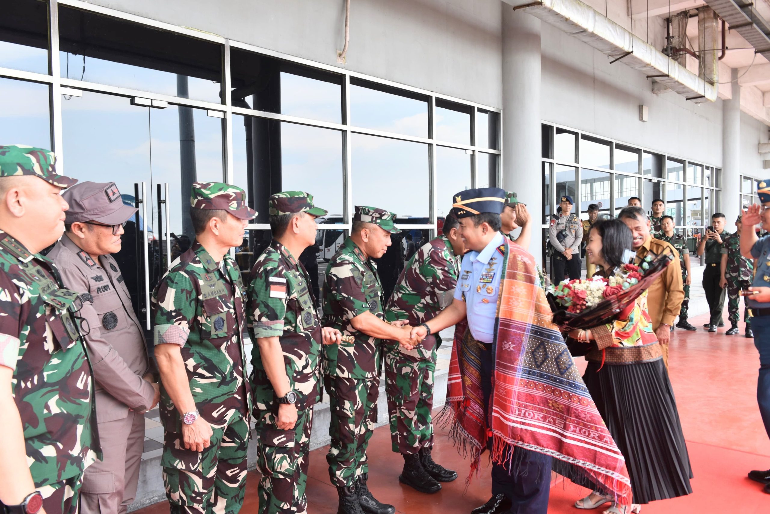 MetropolitanPost.id – Komandan Pangkalan Utama TNI AL I (Danlantamal I) Brigjen TNI (Mar) Jasiman Purba, S.E., CHRMP., beserta Forum Koordinasi Pimpinan Daerah (Forkopimda) Sumatera Utara menyambut kedatangan Dansesko TNI Marsekal Madya TNI Arif Widianto, S.A.B., M.Tr.(Han)., CHRMP., didampingi Ny. Ida Haryati, serta Pasis Dikreg LII Sesko TNI dan rombongan bertempat, di VIP Room Bandara Internasional Kualanamu, Deli Serdang, Sumatera Utara, Senin (05/8/2024).