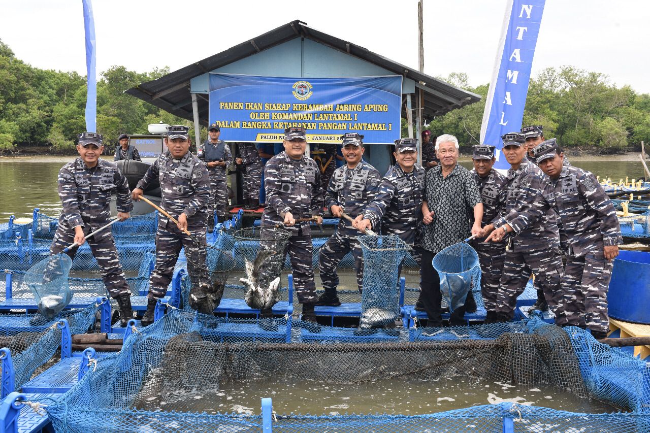 Sebagai wujud pelaksanaan Ketahanan Pangan sektor Maritim di lingkungan TNI Angkatan Laut, Danlantamal I kembali menggelar kegiatan panen raya Ikan di 12 Keramba Jaring Apung Lantamal I.