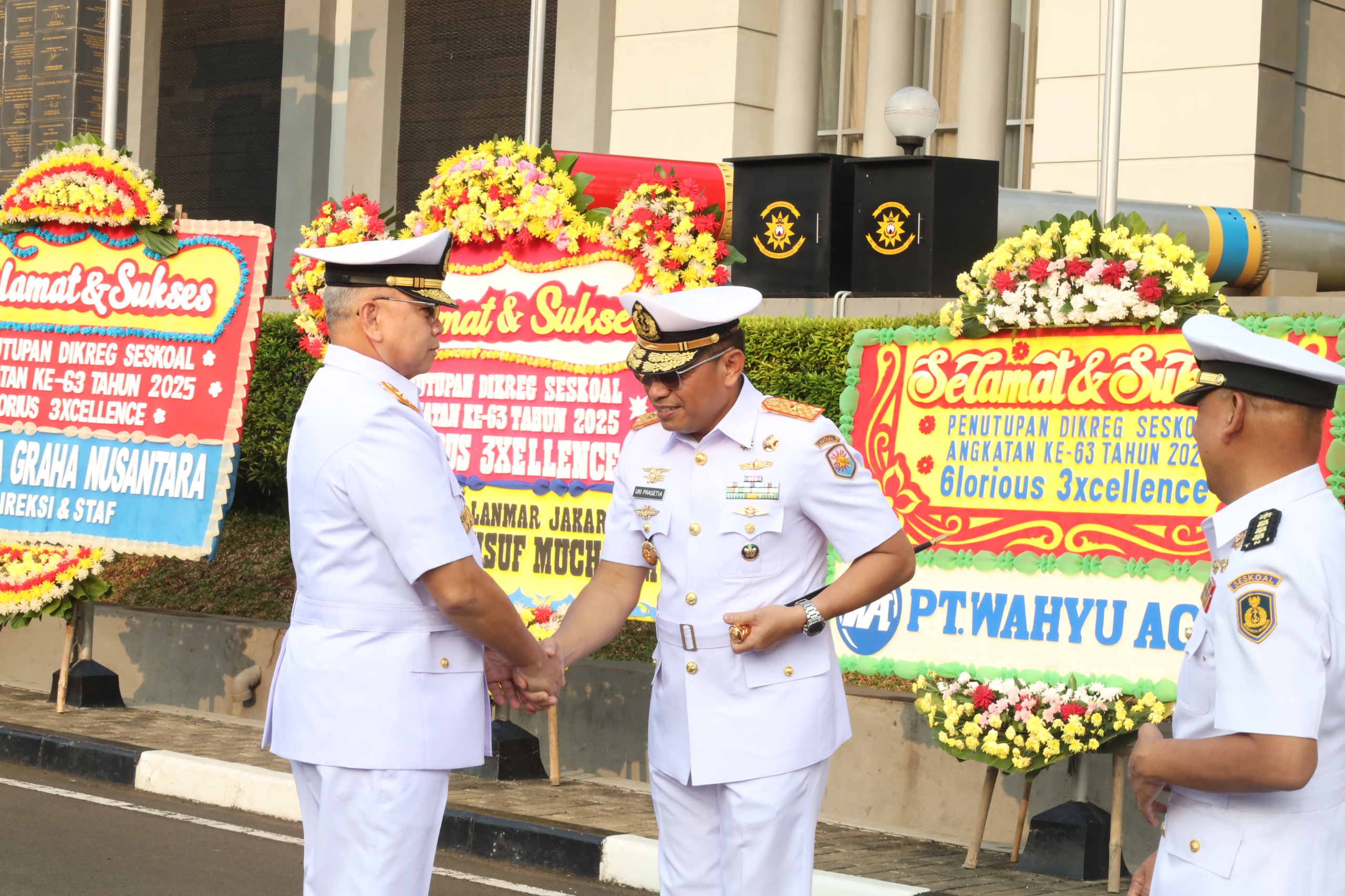 Pendidikan Reguler Sekolah Staf dan Komando Angkatan Laut merupakan pendidikan jenjang tertinggi di lingkup TNI AL, Komandan Lantamal III Laksamana Pertama TNI Uki Prasetia, S.T., M.M. menghadiri upacara penutupan Dikreg Sekoal Angkatan Ke-63 yang dilaksanakan di Aula Gedung Yos Sudarso, Mako Seskoal, Cipulir, Jakarta Selatan, Selasa (3/6).