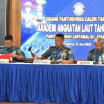 MetropolitanPost.id – Komandan Pangkalan Utama TNI AL (Danlantamal) III Jakarta Brigjen TNI (Mar) Harry Indarto, S.E., M.M. selaku Ketua Panitia Daerah (Panda) Lantamal III Jakarta mendampingi Kepala Dinas Pengamanan dan Persandian Angkatan Laut (Kadispamsanal) Laksma TNI Yudhi Bramantyo N.S. memberikan pengarahan kepada para calon Taruna (Catar) AAL sebelum melaksanakan sidang Penentuan Akhir (Pantukhir) tingkat daerah Panda Lantamal III Jakarta bertempat di lapangan apel Mako Lantamal III Jakarta Jl. Gunung Sahari No. 2 Ancol, Jakarta Utara, Kamis (22/06/2023).