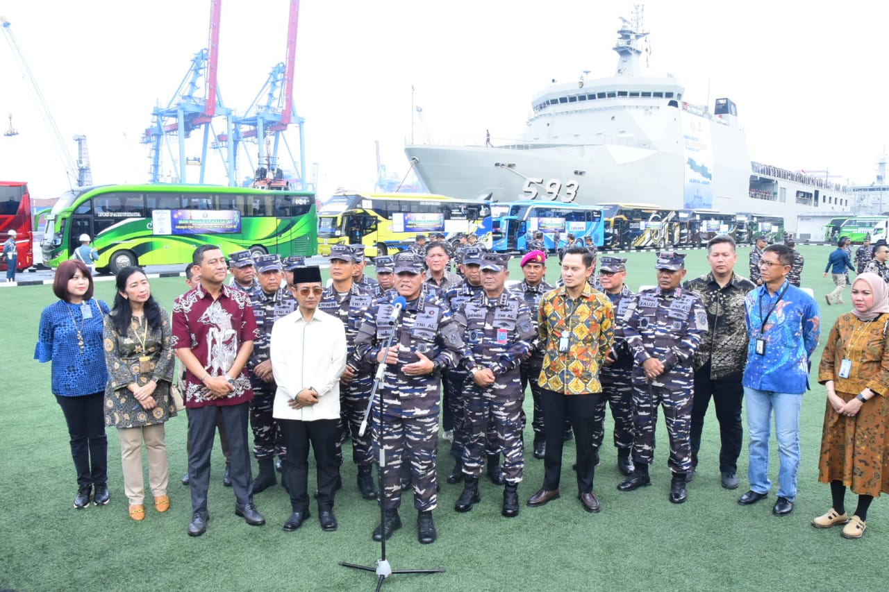 MetropolitanPost.id – Komandan Pangkalan Utama TNI Angkatan Laut (Danlantamal) III Jakarta Brigjen TNI (Mar) Harry Indarto, S.E., M.M. menghadiri acara pelepasan mudik gratis bersama TNI Angkatan Laut menggunakan KRI Banda Aceh (BAC)-593 dan bus dalam rangka menyambut Hari Raya Idul Fitri 1445 H/2024 M, yang dilepas oleh Kepala Staf Angkatan Laut Laksamana TNI Dr. Muhammad Ali, S.E., M.M., M.Tr.Opsla. dan dihadiri Wakasal Laksdya TNI Erwin S. Aldedharma, S.E., M.M., M.Sc. bertempat di Mako Kolinlamil, Jakarta Utara, Jumat (05/04/2024)