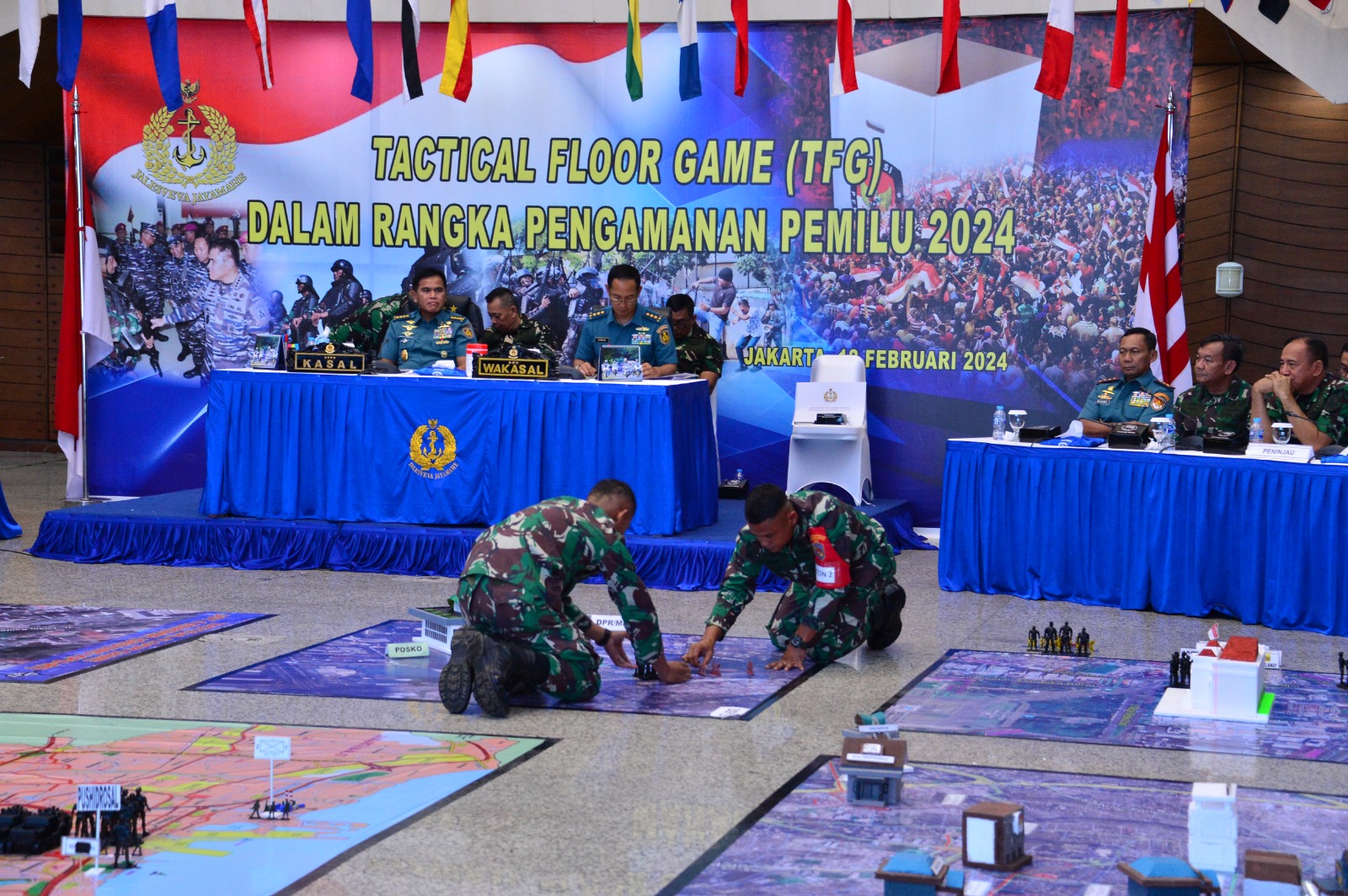 MetropolitanPost.id – Komandan Pangkalan Utama TNI Angkatan Laut (Danlantamal) III Jakarta Brigjen TNI (Mar) Harry Indarto, S.E., M.M. menghadiri tactical floor game (TFG) pengamanan Pemilihan Umum (Pemilu) tahun 2024 dipimpin oleh Asisten Operasi Kepala Staf Angkatan Laut (Asops Kasal) Laksda TNI Yayan Sofiyan, S.T., M.Si., CHRMP., M.Tr.Opsla. yang ditinjau oleh Kepala Staf Angkatan Laut (Kasal) Laksamana TNI Muhammad Ali, S.E., M.M., M.Tr.Opsla. didampingi Wakasal Laksdya TNI Erwin S. Aldedharma, S.E., M.M., M.Sc. bertempat di Auditorium Yos Soedarso Denma Mabesal Cilangkap, Jakarta Timur, Senin (12/02/2024).