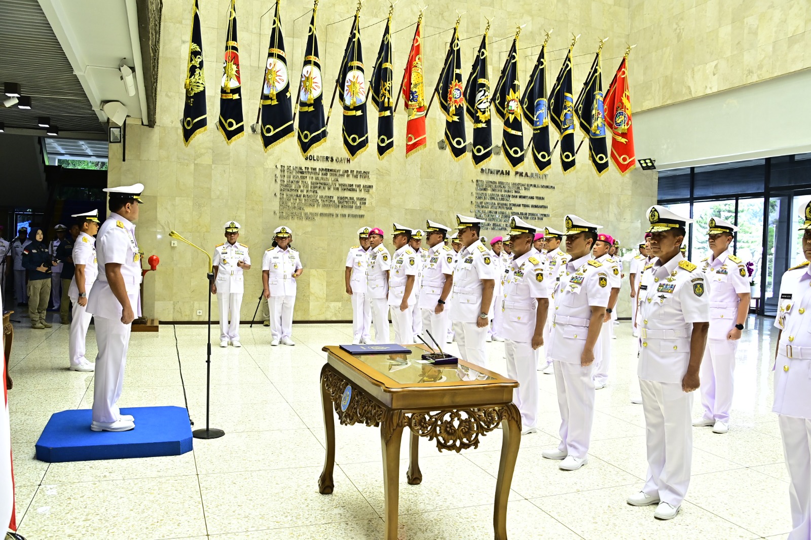 MetropolitanPost.id – Komandan Pangkalan Utama TNI Angkatan Laut (Danlantamal) III Jakarta Brigjen TNI (Mar) Harry Indarto, S.E., M.M. menghadiri upacara serah terima jabatan (Sertijab) Asisten Intelijen Kepala Staf Angkatan Laut (Asintel Kasal), Asisten Logistik (Aslog) Kasal, Kepala Dinas Pengamanan dan Persandian Angkatan Laut (Kadispamsanal), Kepala Dinas Operasi dan Latihan Angkatan Laut (Kadisopslatal), Kepala Dinas Perawatan Personel Angkatan Laut (Kadiswatpersal), Kepala Dinas Kesehatan Angkatan Laut (Kadiskesal), Kepala Dinas Kelaikan Materiel Angkatan Laut (Kadislaikmatal), dan Kepala Dinas Fasilitas Pangkalan Angkatan Laut (Kadisfaslanal) dengan inspektur upacara (Irup) Kepala Staf Angkatan Laut (Kasal) Laksamana TNI Dr. Muhammad Ali, S.E., M.M., M.Tr.Opsla. bertempat di lobi gedung R.E. Martadinata Mabesal Cilangkap, Jakarta Timur, Senin (22/01/2024).