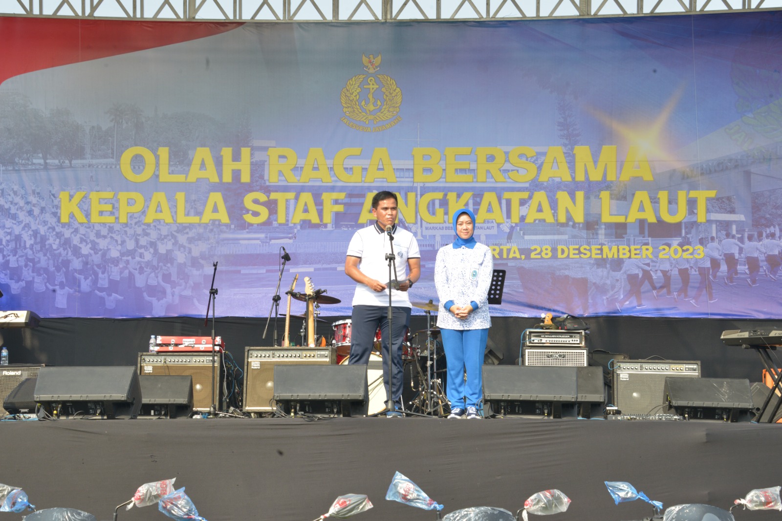 MetropolitanPost.id – Komandan Pangkalan Utama TNI Angkatan Laut (Danlantamal) III Jakarta Brigjen TNI (Mar) Harry Indarto, S.E., M.M. mengikuti olahraga bersama dengan Kepala Staf Angkatan Laut (Kasal) Laksamana TNI Dr. Muhammad Ali, S.E., M.M., M.Tr.Opsla. dan Ketua Umum (Ketum) Jalasenastri Ny. Fera Muhammad Ali serta dihadiri Wakasal Laksdya TNI Erwin S. Aldedharma, S.E., M.M., M.Sc. dan Waketum Jalasenastri Ny. Ketty Erwin S. Aldedharma bertempat di lapangan Trisila Mabesal Cilangkap, Jakarta Timur, Kamis (28/12/2023).