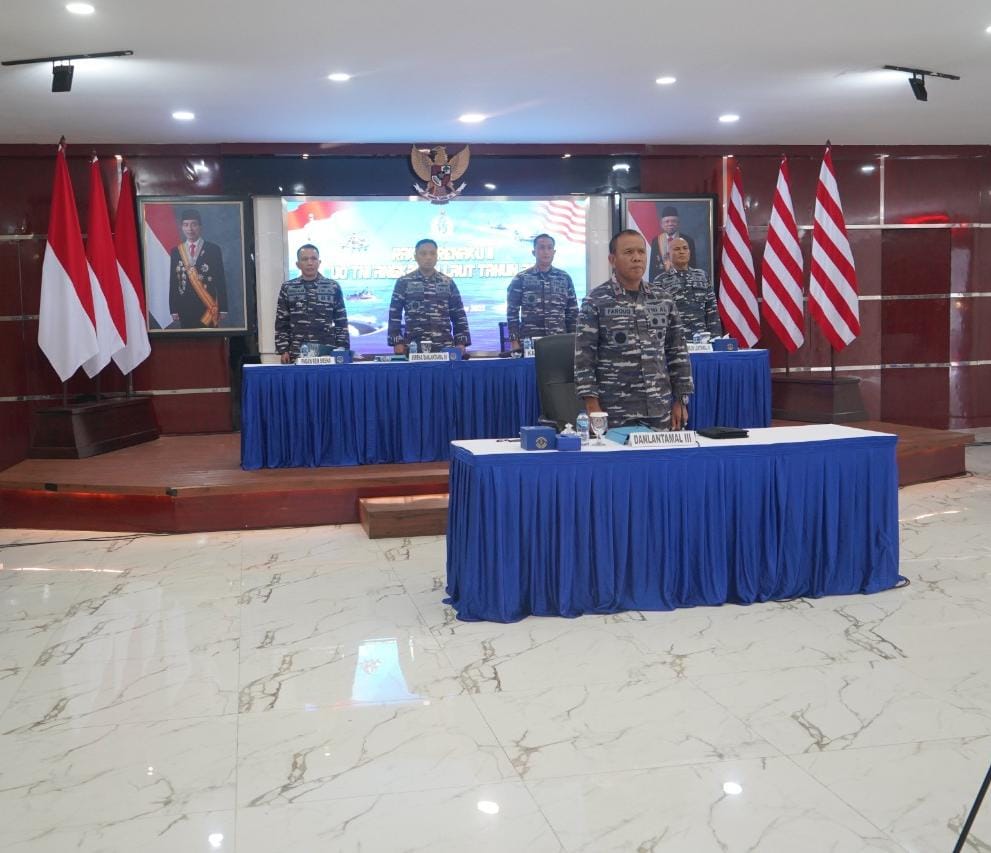 MetropolitanPost.id – Komandan Pangkalan Utama TNI AL (Danlantamal) III Jakarta, Brigjen TNI (Mar) Umar Farouq, S.A.P., CHRMP., M.Tr.Opsla., M.Han. didampingi Asrena Danlantamal III, Kadisfaslan, Kadisharkan Lantamal III dan Paban Srena Danlantamal III Jakarta mengikuti rapat koordinasi Perencanaan dan Keuangan (Rakor Renaku) II UO TNI AL tahun 2022 secara virtual yang dibuka oleh Kepala Staf TNI Angkatan Laut (Kasal) Laksamana TNI Yudo Margono, S.E., M.M. dari Auditorium Denma Mabesal, Cilangkap, Jakarta Timur, melalui video conference di ruang serbaguna Mako Lantamal III, Jl. Gunung Sahari No. 2 Ancol Jakarta Utara, Kamis (08/12/2022).