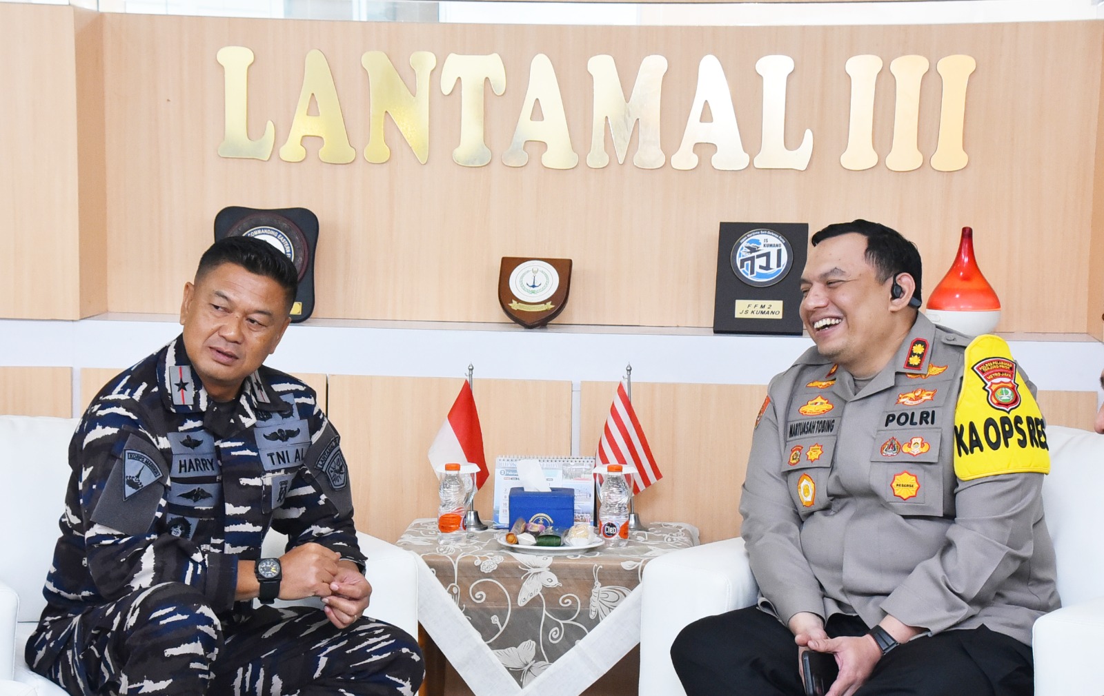 TNI AL-Dispenlantamal3. Komandan Pangkalan Utama TNI Angkatan Laut (Danlantamal) III Jakarta Brigjen TNI (Mar) Harry Indarto, S.E., M.M. menerima courtesy call (CC) Kapolres Pelabuhan Tanjung Priok AKBP Dr. Martuasah Hermindo Tobing, S.I.K., M.H. bertempat di ruang tamu Danlantamal III Jakarta, Mako Lantamal III Jakarta Jl. Gunung Sahari No. 2, Jakarta Utara, Senin (11/02/2025).