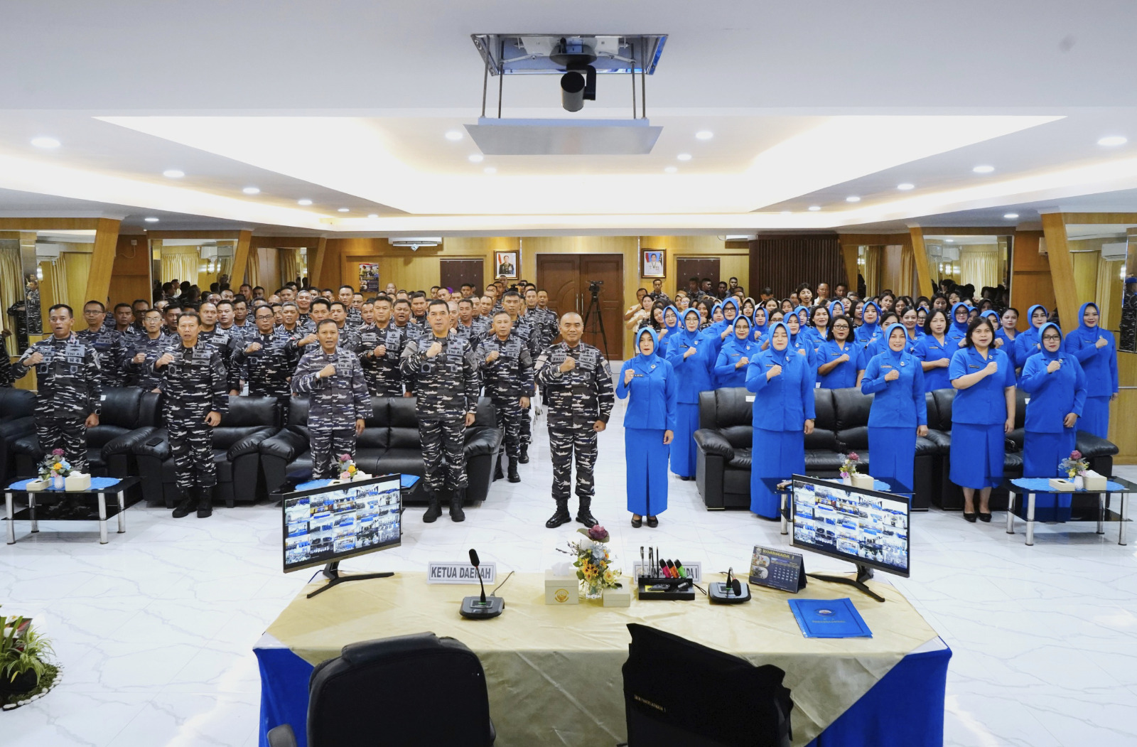 TNI AL-Dispenlantamal3. Komandan Pangkalan Utama TNI Angkatan Laut (Danlantamal) III Jakarta Brigjen TNI (Mar) Harry Indarto, S.E., M.M. didampingi Ketua Koordinator Cabang (Korcab) III Daerah Jalasenastri Armada (DJA) I Ny. Neneng Harry Indarto mengikuti entry briefing Panglima Komando Armada (Pangkoarmada) I Laksda TNI Fauzi, S.E., M.M., M.Tr.Opsla., M.Tr.Han. didampingi Ketua DJA I Ny. Juni Fauzi, bertempat di aula R. Sudomo Mako Koarmada I, Tanjung Pinang, Kepulauan Riau, Selasa (18/03/2025).