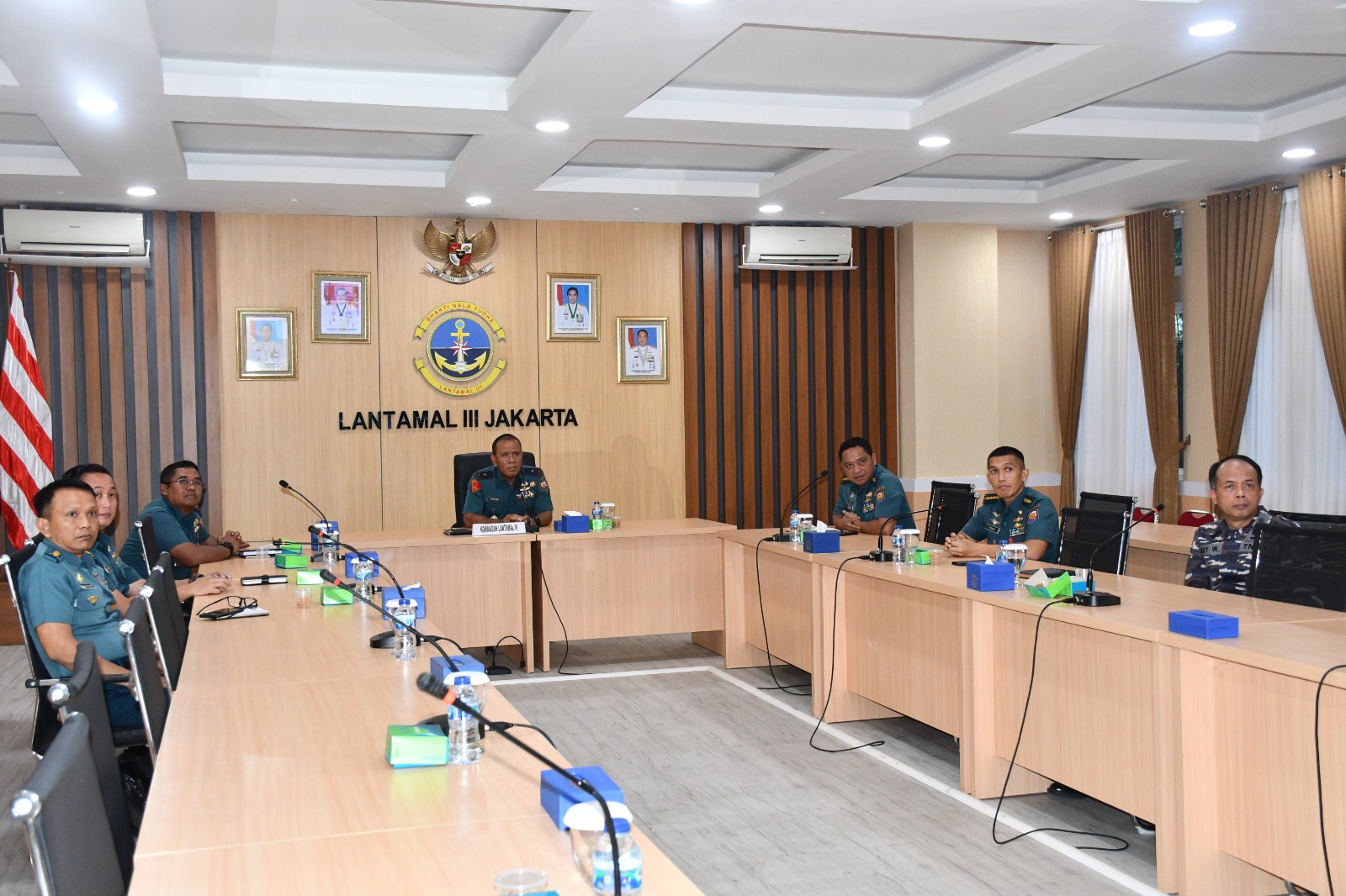 TNI AL DispenLantamal3,- Komandan Lantamal III Jakarta Brigjen TNI (Mar) Umar Farouq, S.A.P., CHRMP., M.Tr.Opsla., M.Han. didampingi Asrena, Aslog Danlantamal III dan Kakuail serta Kadisfaslan Lantamal III menghadiri Penandatanganan Kontrak Bersama Pengadaan Barang Dan Jasa UO TNI AL TA. 2023 secara video converence di Rupat Besar Mako Lantamal III, Rabu(01/02/2023).