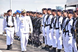 MetropolitanPost.id – Komandan Lantamal XII Laksamana Pertama TNI Suharto, S.H., M.Si.(Han) sebagai Inspektur Upacara (Irup) pada pelaksanaan Upacara Hari Ulang Tahun Ke-77 TNI Angkatan Laut Tahun 2022, di Dermaga Satrol Lantamal XII, Jalan Komodor Yos Sudarso No.1 Kota Pontianak, Kalbar, Senin (12/09/2022).