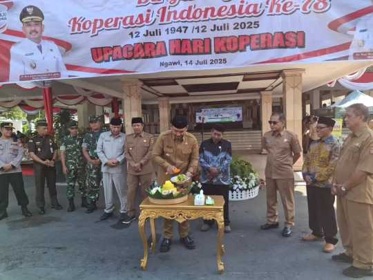 Upacara tersebut dipimpin langsung oleh Bupati Ngawi, Ony Anwar Harsono, yang dalam sambutannya menekankan pentingnya peran koperasi sebagai sokoguru perekonomian rakyat.