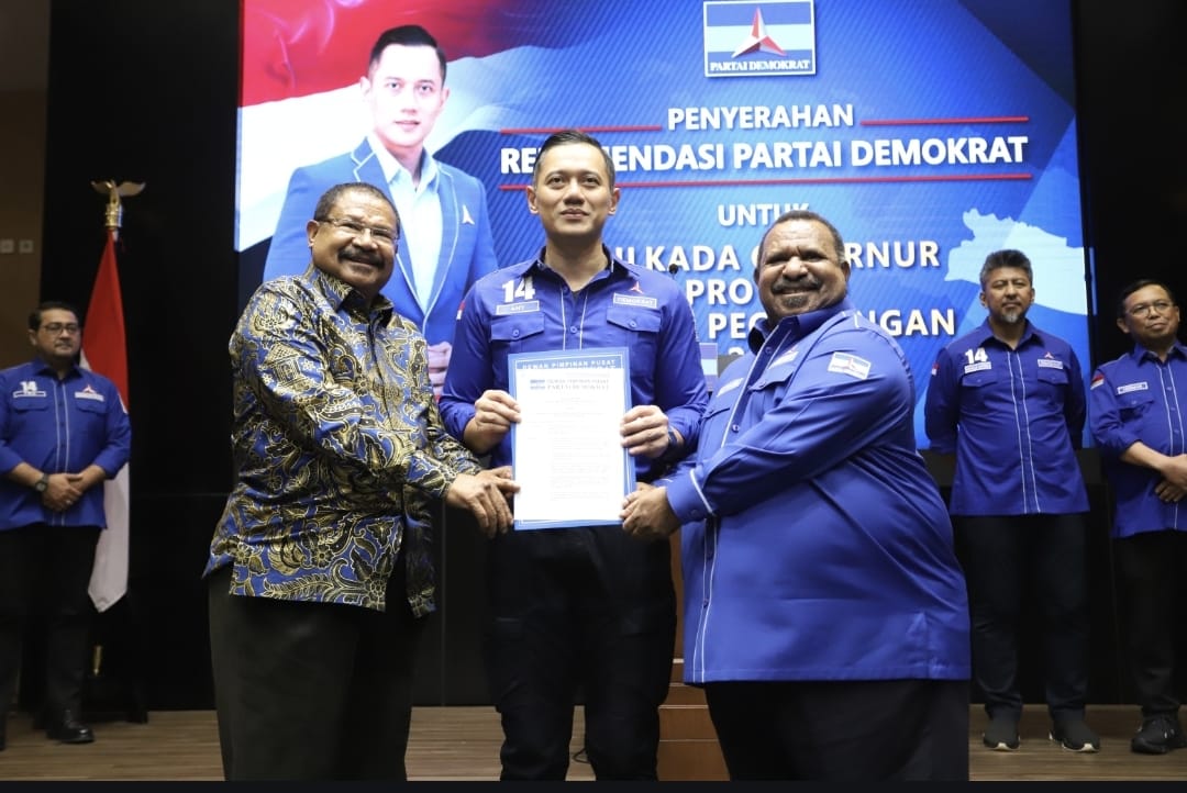 “Oleh karena itu dengan rasa Syukur dan penuh dengan kehormatan dan kebanggaan Partai Demokrat memberikan rekomendasi kepada Beliau berdua semoga ini bisa membawa perahu ini berlayar bukan hanya berlayar tapi menang dan ketika menang menjadi pemimpin menjadi gubernur dan wakil gubernur yang bisa membawa amanah kemajuan dan Pembangunan untuk Masyarakat Papua Pegunungan,” lanjutnya sebelum menyerahkan surat rekomendasi.