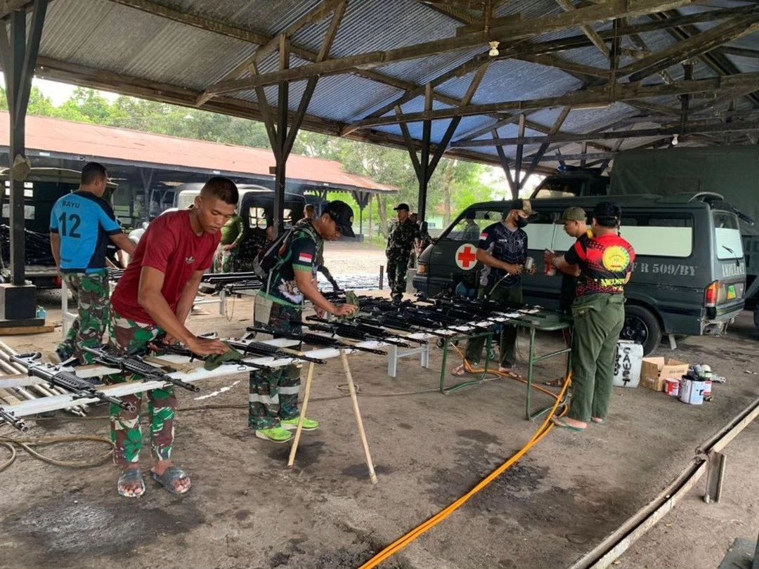 Adapun peralatan yang dibawa bengkel senjata untuk memperbaiki senjata meliputi toolkit dan suku cadang serta bengkel tekmek melengkapi peralatannya untuk pengecatan senjata seperti kompresor dan cat yang berkualitas tinggi.