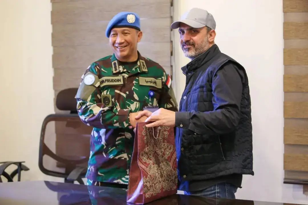 Diakhir kegiatan Komandan Satgas Yonmek XXIII-Q/Unifil Kolonel Inf Syafruddin memberikan cinderamata sebagai sebagai tanda terima kasih atas kerjasama yang baik. (Penkostrad).