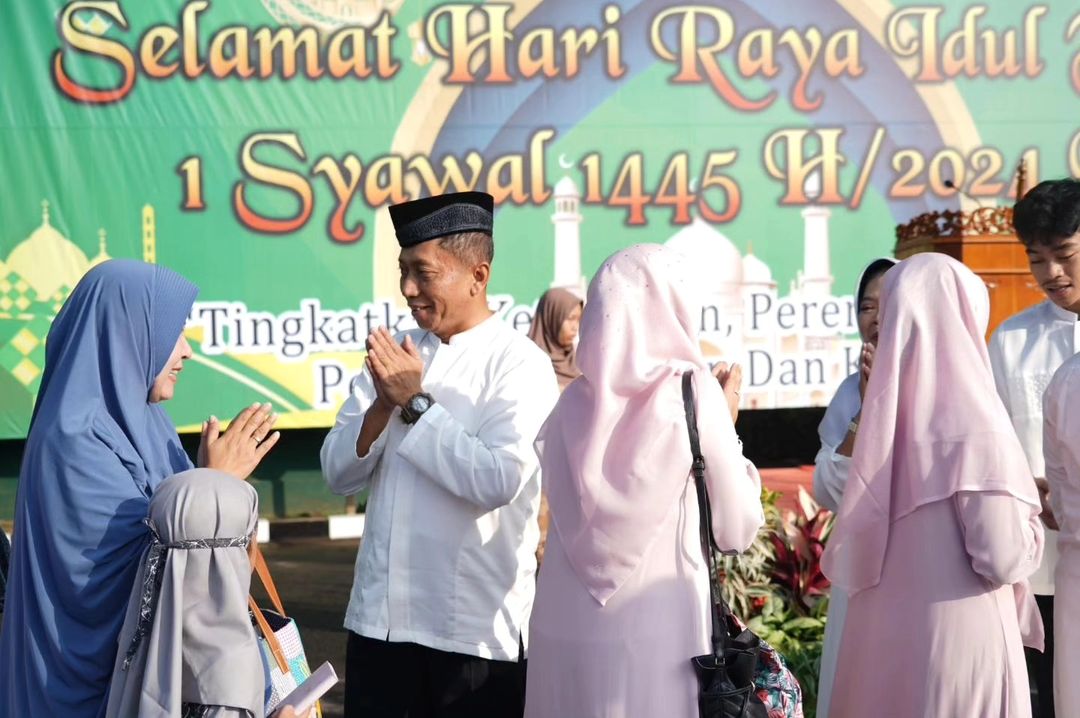 Usai melaksanakan Sholat Idul Fitri, Ustadz Achmad Sidiq Ansori selaku Khotib memberikan ceramahnya kepada seluruh jamaah Sholat Idul Fitri. Dalam ceramahnya, menyampaikan kita sebagai umat muslim harus pandai untuk selalu bersyukur dalam hal apapun terutama dalam hal meningkatkan kualitas iman dan islam kita kepada Allah SWT”, tuturnya.