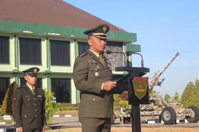 Bertindak sebagai Inspektur Upacara Asren Divif 3 Kostrad Kolonel Inf Aan Setiawan, Komandan Upacara Dandenma Divif 3 Kostrad Mayor Inf Harianto., S.I.P.