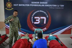 “Dengan mendonorkan darahnya secara rutin maka tubuh akan terpacu untuk memproduksi sel-sel darah merah baru. Ini berarti fungsi darah merah menjadi lebih baik sehingga tubuh akan menjadi lebih sehat,” ujar Danyon bekang 1 kostrad Letkol Cba Kemal Pasah,S.E.