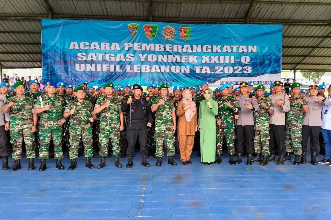MetropolitanPost.id – Pada kesempatan yang berbahagia sekaligus terharu Yonif Mekanis 320/Badak Putih melaksanakan acara pelepasan pemberangkatan satuan penugasan ke daerah misi Lebanon, Prajurit Yonif Mekanis 320/Badak Putih di berikan mandat dalam tugas yang istimewa, karena sebagai prajurit juga menjadi duta bangsa, duta TNI dan menjadi wajah TNI di forum internasional, Pandeglang, Banten. Jum’at (25/02/2023).