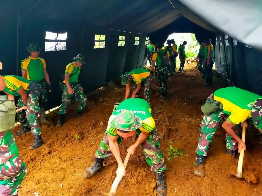 Dengan dikerahkannya personel Yonzipur 9/Lang Lang Bhuwana Divif 1 Kostrad ke Kampung Maleber Desa Ciherang semoga dapat memberikan kenyamanan kepada warga yang mengungsi. (Penkostrad).