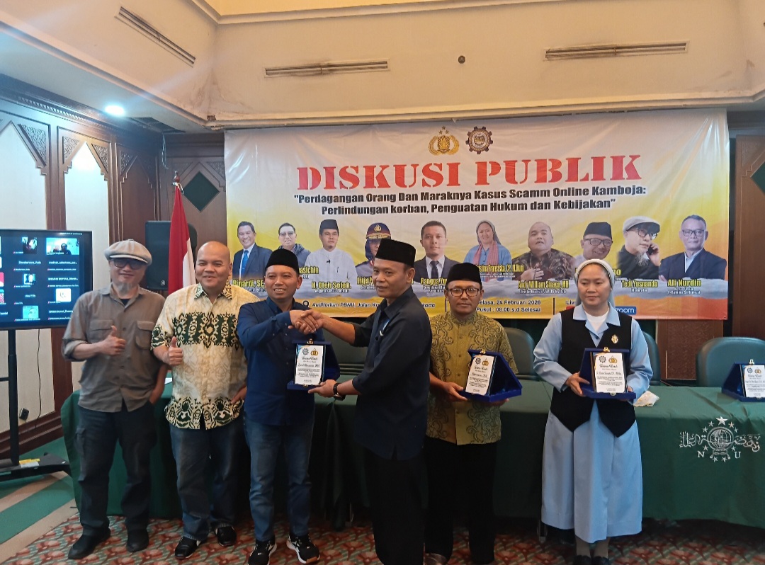 Jakarta, 24 Februari 2026 – Kasus perdagangan orang dan maraknya scam online di Kamboja menjadi sorotan publik, menyadarkan perlunya penguatan implementasi regulasi dan perlindungan bagi pekerja migran Indonesia. Hal ini diungkapkan dalam Diskusi Publik bertema “Perdagangan Orang dan Maraknya Kasus Scamm Online Kamboja: Perlindungan Korban, Penguatan Hukum dan Kebijakan” yang digelar di Gedung PBNU Jakarta, Selasa (24/02/26).