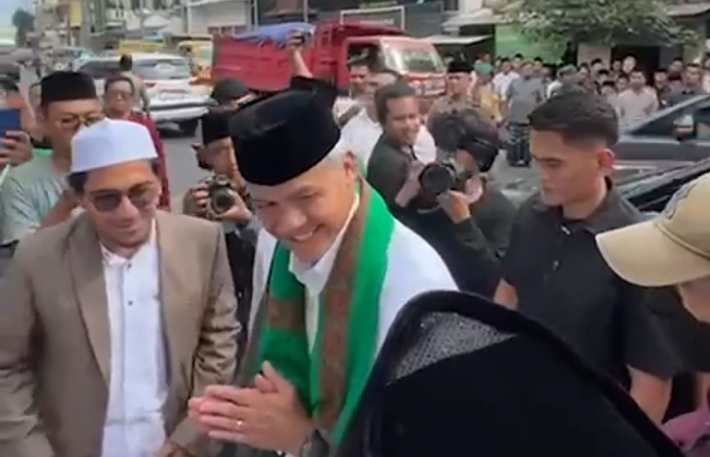 “Saya ke sini bukan sebagai Capres, tapi pulang ke rumah sebagai putra Mbah Moen,” ucap Ganjar, yang disambut dengan tepuk tangan hangat oleh keluarga dan para ulama di Ponpes Al Anwar.