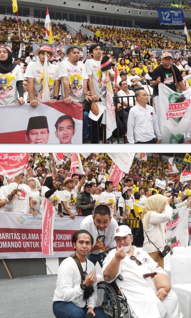 ”Bahkan saat di arena GBK pun demikian, orang yang hadir sangat banyak hingga kursi arena di GBK penuh, hingar-bingar dengan sambutan awal oleh Gibran memberikan salam hormat pada pak Prabowo, lalu Gibran juga katakan tenang-tenang pak Prabowo saya datang sampai-sampai tepuk tangan riuh di GBK, intinya masyarakat yang hadir memberi suport dukungan hingga massa banjiri GBK tak terbendung,” pungkasnya.