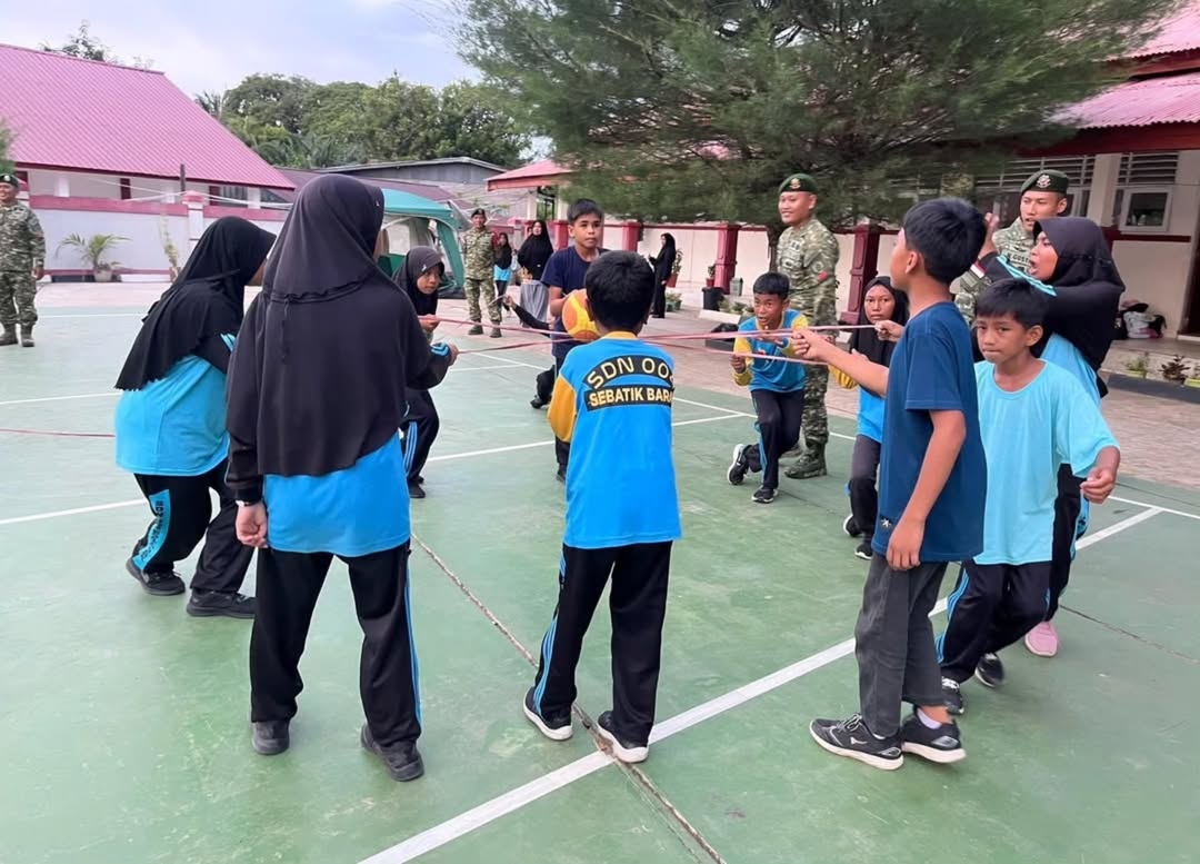 Nunukan – Dalam upaya meningkatkan rasa cinta tanah air dan semangat kebangsaan generasi muda, Satgas Pengamanan Perbatasan Yonarmed 11 Kostrad melaksanakan kegiatan pembekalan wawasan kebangsaan dan latihan Peraturan Baris-Berbaris (PBB) kepada para sisa siswi SDN 004 Binalawan, Kecamatan Sebatik Barat, Kabupaten Nunukan. Rabu (26/2/ 2025).