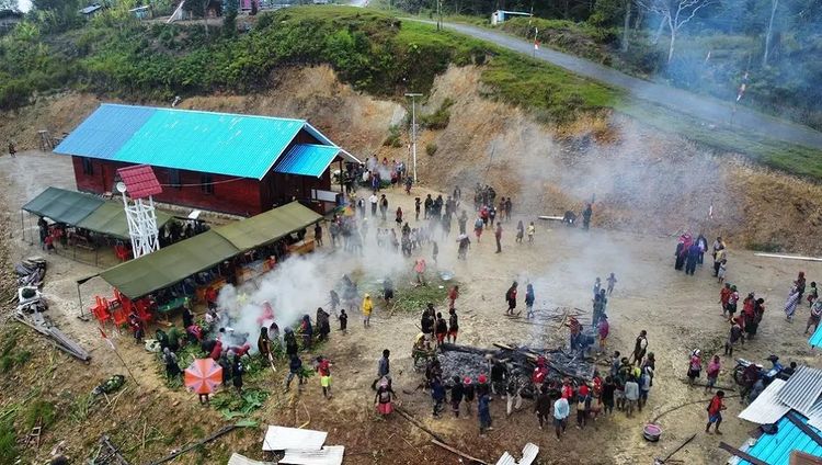 Tak peduli hujan yang tak ada hentinya membasahi tanah Intan Jaya sejak Selasa sore, masyarakat Bazemba penuh berkumpul, menyiapkan perayaan peresmian Gereja yang telah lama mereka idam-idamkan. Lima ekor babi, yang salah satunya merupakan hadiah dari KASAD serta 300 ekor ayam, dipotong dan dimasak dengan budaya bakar batu.
