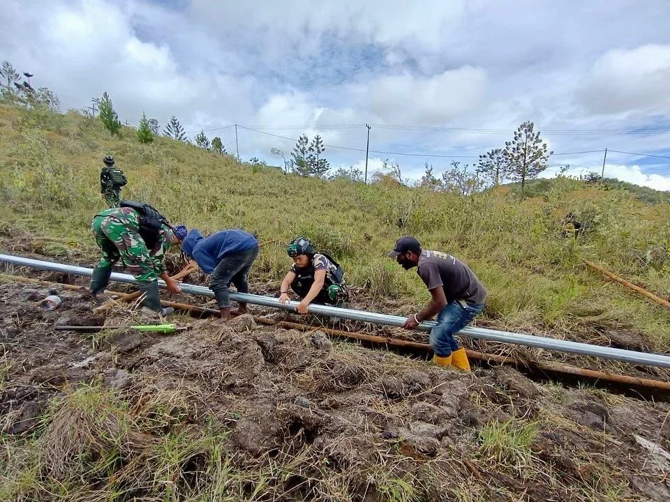 Gotong Royong Atasi Pipa Pocor Pedalaman Papua, Yonif R 321 Kostrad