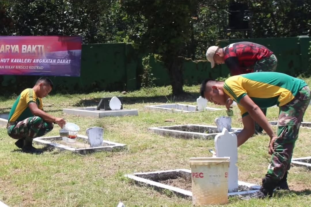 Malang – Dalam rangka memperingati HUT ke-75 Kavaleri Angkatan Darat, keluarga besar satuan Kikav 8/KSC/2 Kostrad melaksanakan beberapa rangkaian kegiatan untuk memeriahkannya. Adapun kegiatan karya bakti pembersihan lingkungan yang dilaksanakan di Taman Makam Pahlawan Tumpang, Desa Kebon Sari, Kecamatan Tumpang, Kabupaten Malang. (05/02/2025).