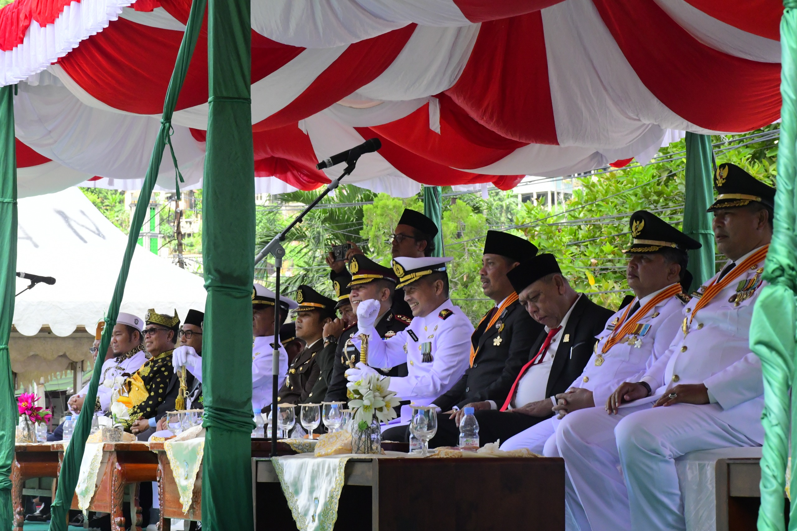 Segenap Prajurit Lanal Tarempa Perwira, Bintara, Tamtama dan PNS sebagai Peserta dan Panitia Penyelenggara turut antusias dan semangat dalam mengikuti jalannya Upacara Pengibaran Bendera Merah Putih pada Peringatan HUT Ke-79 Kemerdekaan Republik Indonesia di Kabupaten Kepulauan Anambas Tahun 2024.