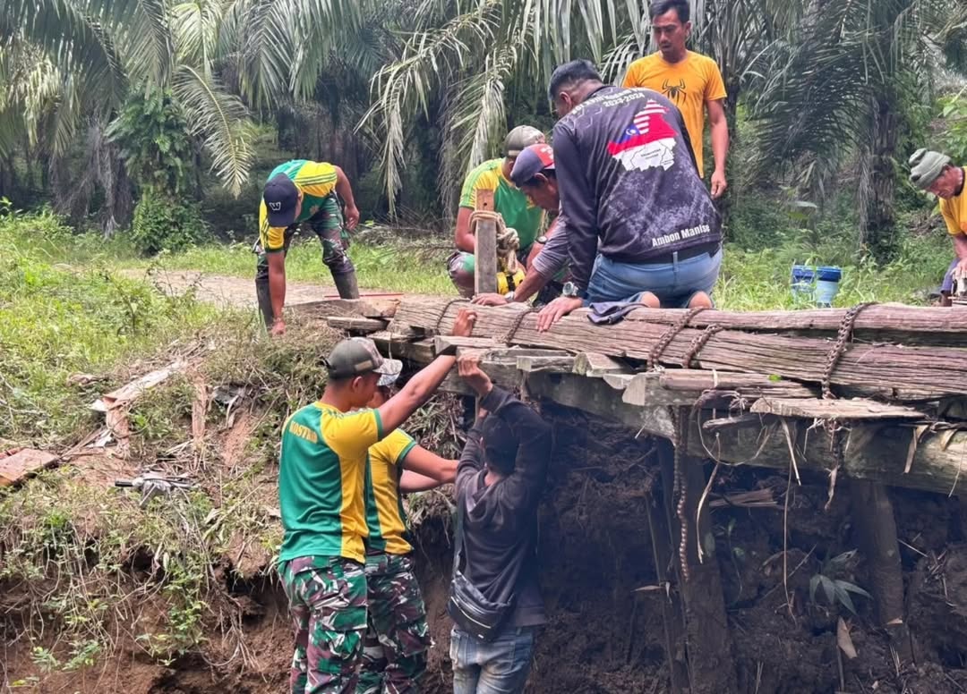 Mereka bahu-membahu melaksanakan karya bakti perbaikan jalan desa yang mengalami kerusakan dan menghambat aktivitas warga.
