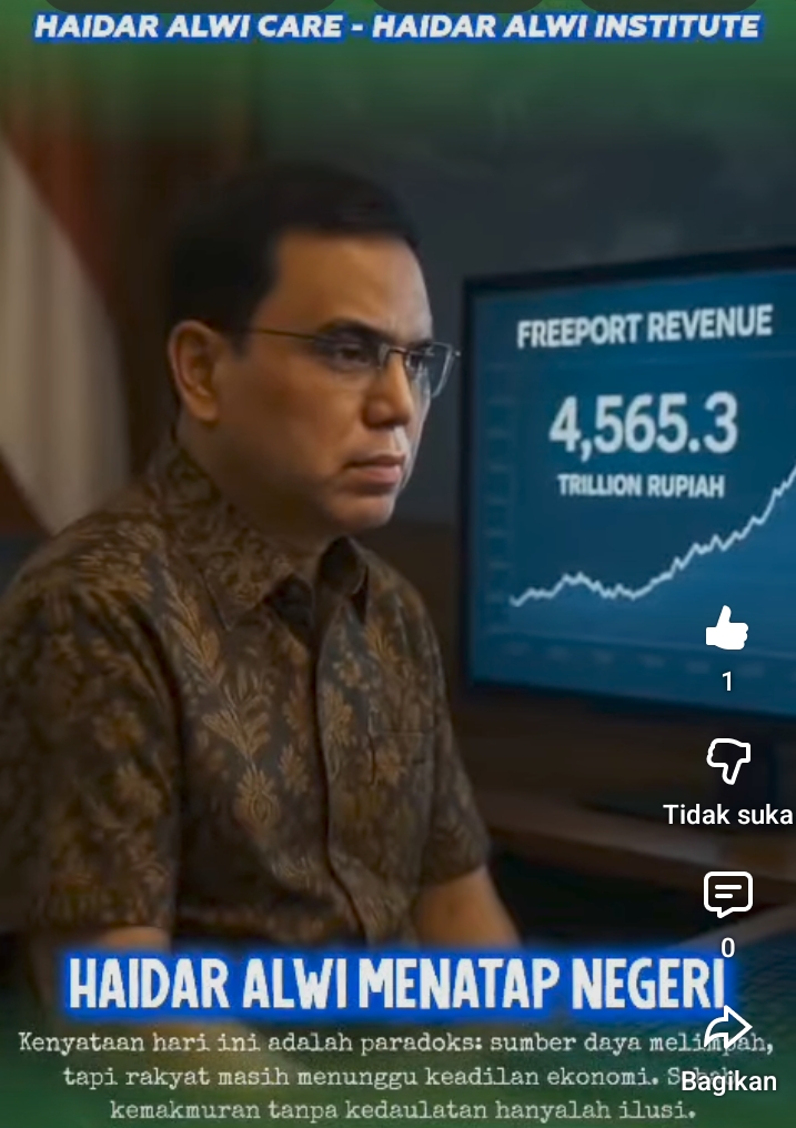 Dalam refleksi yang disampaikannya di Jakarta, Haidar Alwi menyoroti ironi besar yang telah lama terjadi, yang mana Indonesia adalah negeri yang sangat kaya, tetapi belum berdaulat penuh atas hasil kekayaannya sendiri.
