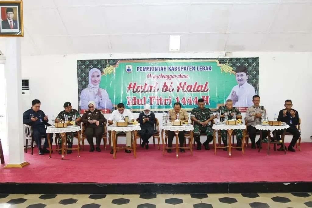 Bupati Lebak Iti Octavia Jayabaya dan Wakil Bupati Ade Sumardi bersama Forum Koordinasi Pimpinan Daerah (Forkopimda) Kabupaten Lebak, beserta jajaran Pejabat Pemkab Lebak turut menghadiri Kegiatan yang dilaksanakan di Pendopo Bupati Lebak, Selasa (2/5/2023).