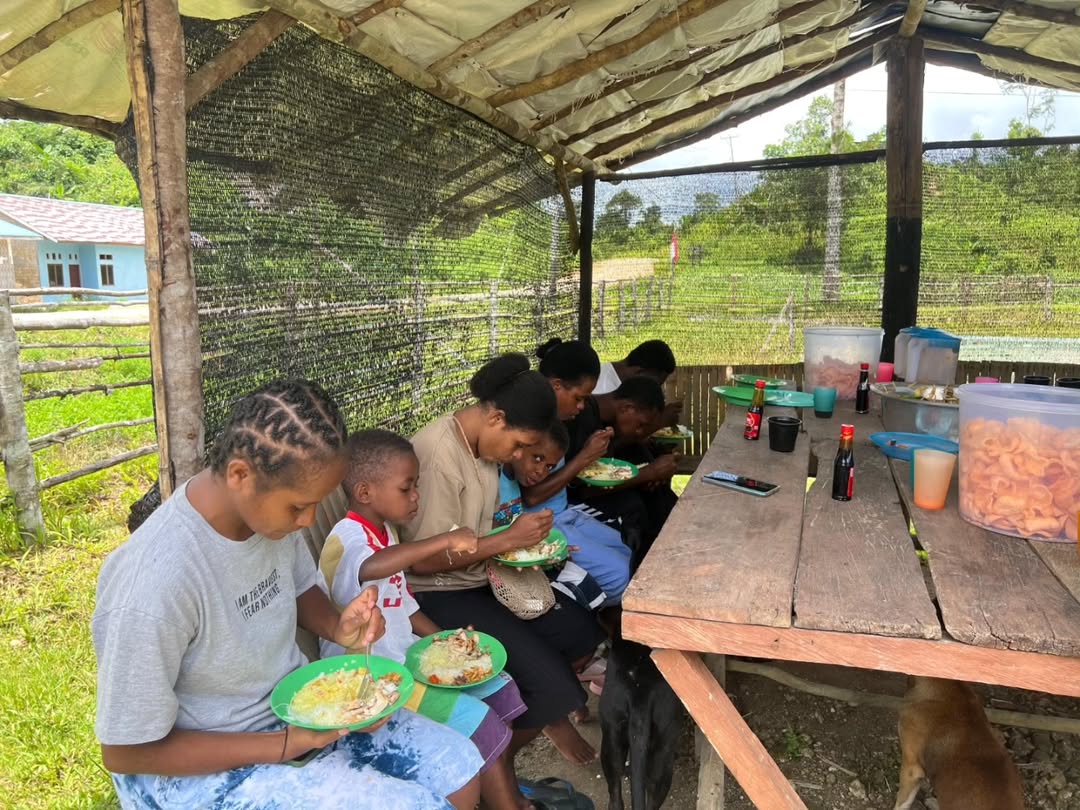 Papua – Suasana hangat dan penuh kebersamaan mewarnai Pos Satgas Yonif 501/BY di Kampung Imsun, Papua, saat para prajurit dengan penuh semangat membagikan ketupat dan opor ayam secara gratis kepada masyarakat setempat. Minggu (7/4/2025).
