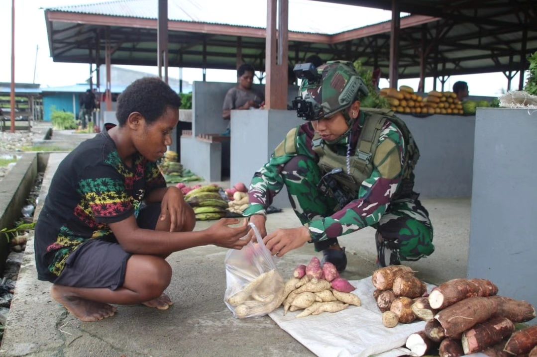 MetropolitanPost.id – Satgas Pamtas Mobile RI-PNG Yonif 503/Mayangkara Koops Habema memborong aneka hasil bumi masyarakat Kota Kenyam di Pasar Keyabi Kabupaten Nduga Papua. Kamis (30/05/2024).