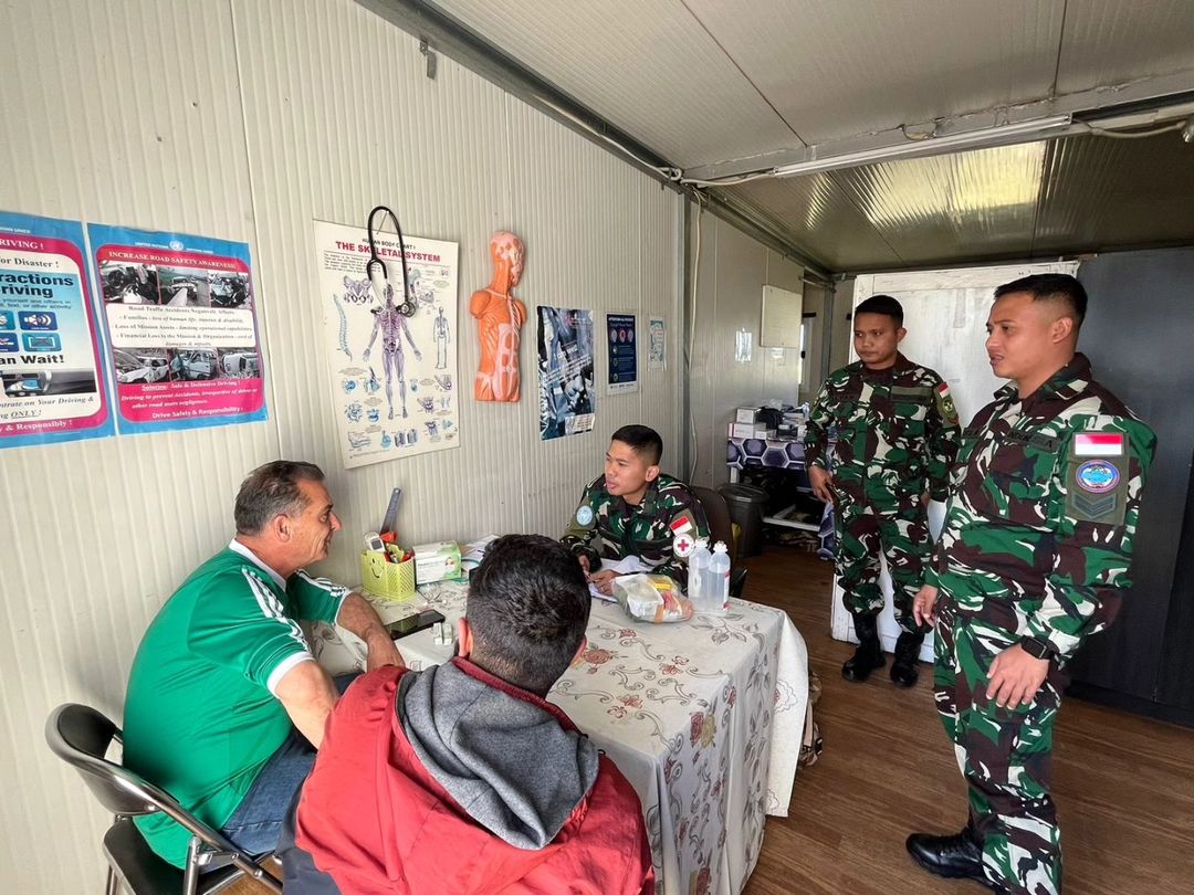 MetropolitanPost.id – Satgas Yonmek TNI Konga XXIII-R/_UNIFIL_ yang memiliki layanan kesehatan Husada UNP 7-1 di Lebanon Selatan melaksanakan pelayanan kesehatan bukan hanya untuk prajurit TNI yang sedang bertugas di daerah misi, tetapi juga melaksanakan pelayanan kesehatan kepada masyarakat Lebanon dan juga hari ini melaksanakan pelayanan kesehatan kepada Lebanese Army yaitu salah satu anggota Lebanese Armed Forces (LAF) yang sedang bertugas, Jum’at (5/04/2024).