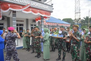“Kami berharap di Hari Ulang Tahun ke-77 TNI AL, sesuai dengan tema “TNI AL Yang Propesional Modern dan Tangguh Siap Mendukung Indonesia Pulih Lebih Cepat, Bangkit Lebih Kuat,” melalui sinergitas dan kekompakan bersama-sama antar Institusi TNI Angkatan Darat, Laut, Udara, dan Polri hubungan yang sudah baik selama ini kedepannya semakin solid lagi dan bersenigitas menciptakan negeri yang aman, kondusif dan sejahtera,” kami beserta rombongan mengucapkan banyak terima kasih kepada Danlanal yang telah meluangkan waktunya untuk menyambut kedatangan kami, ungkap Dandim.