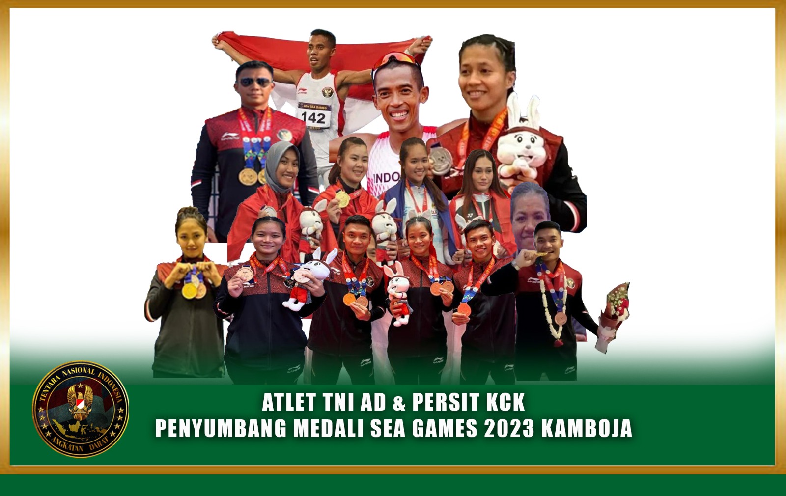 Berikut daftar atlet TNI AD dan Persit peraih medali emas, perak dan perunggu pada SEA Games 2023 di Kamboja.