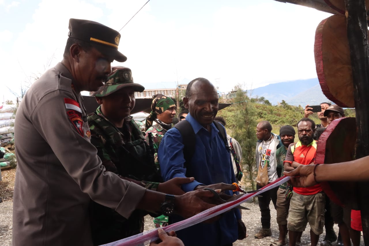 Ardy kemudian melanjutkan, “Semua masyarakat boleh datang kesini, putar-putar kopi, makan pinang sirih sambil bernyanyi. Saya juga berharap dan memohon kepada Bapak Pendeta, Tokoh masyarakat untuk sesekali melalui pengeras suara ini menyampaikan pesan agar bersama-sama mewujudkan Papua Penuh Damai, PAPEDA.”