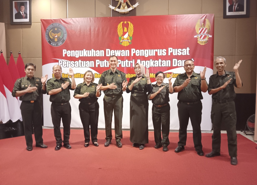 Jakarta, 12 Desember 2024 – Keluarga Besar Tentara Angkatan Darat RI Mengadakan Pengukuhan Pengurus Pusat Persatuan Putra Putri Angkatan Darat (PPPAD) dengan tema “SDM Berkualitas Dan Berwawasan Kebangsaan Menuju Indonesia Emas” di Aula Soeryadi Sekretariat DPP PPAD Jakarta pada hari Kamis, 12 Desember 2024.