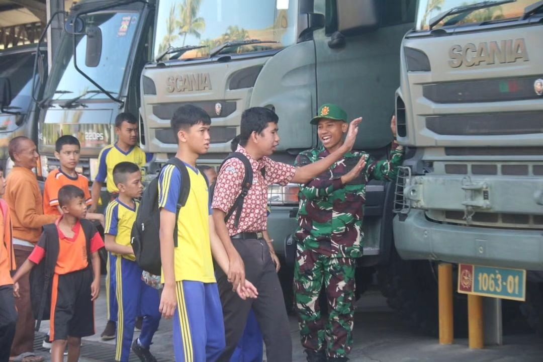 Riski salah satu murid yang ikut serta dalam kegiatan ini tampak ceria. Dia mengatakan jika dirinya senang bisa bermain dengan Pak Tentara. Mereka sangat baik dan kuat.