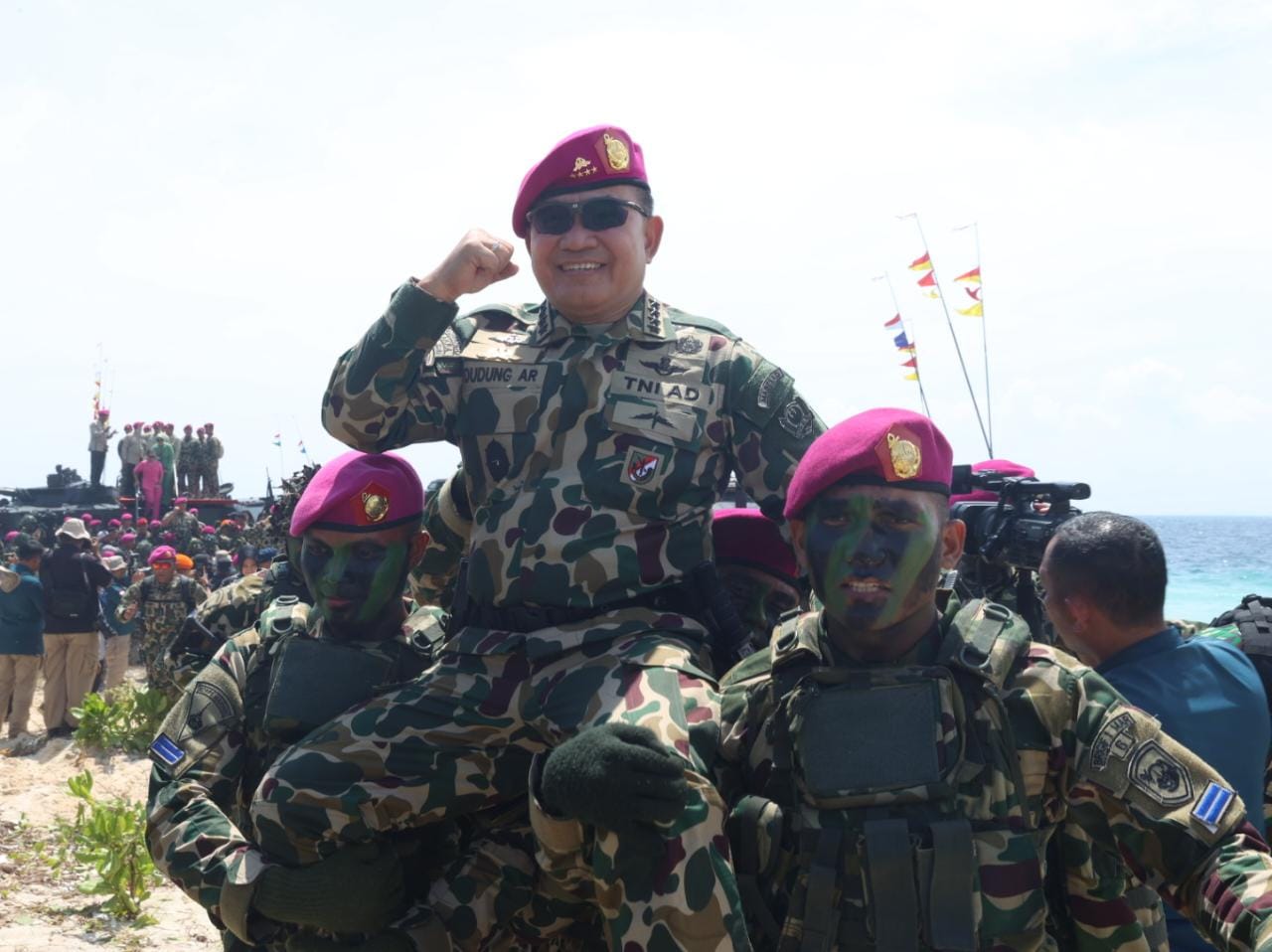 “Suatu kebanggaan bagi saya dikukuhkan sebagai warga kehormatan Korps Marinir TNI AL bersama dengan Ketua MPR RI , Ketua DPR RI, Kapolri dan para Kepala Staf Angkatan. Marinir sama seperti TNI AD, luar biasa dan paten, ” ujar Kasad.