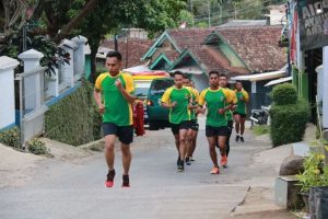 Kegiatan lari pagi diawali dengan apel pagi bersama dilanjutkan dengan melaksanakan pemanasan serta dilanjutkan dengan lari sejauh 10 Km.