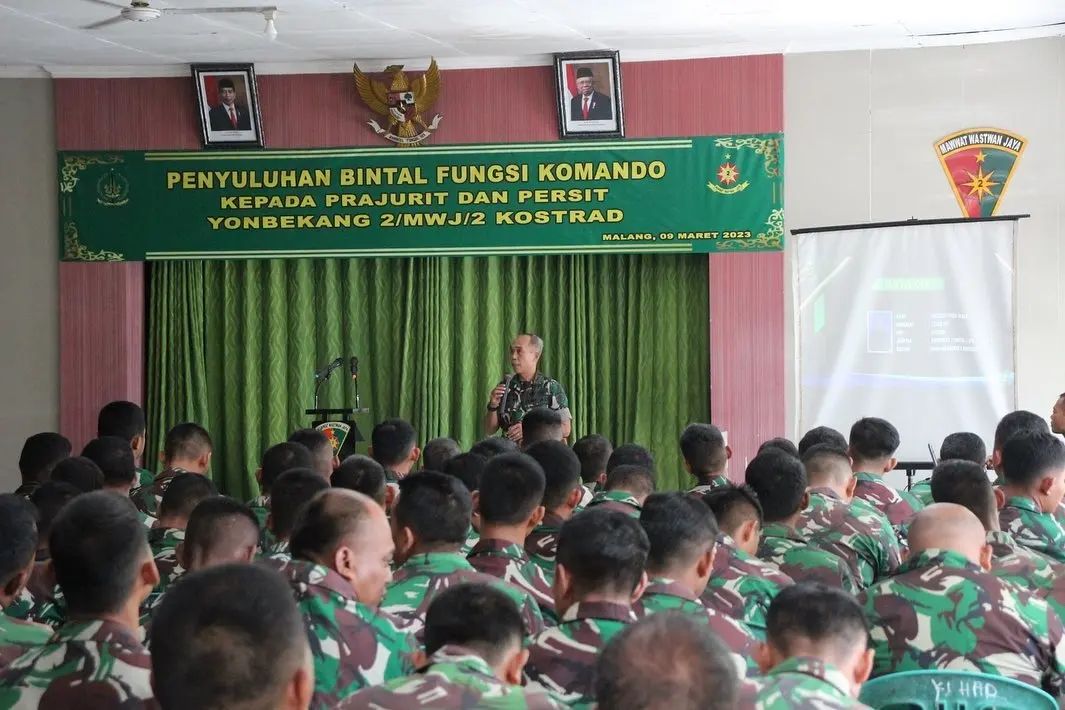 MetropolitanPost.id – Untuk memelihara dan meningkatan kualitas Mental rohani, Ideologi, dan Kejuangan. Prajutit dan Persit Yonbekang 2 Kostrad mengikuti kegiatan Pembinaan Mental Fungsi Komando dan Kejuangan yang dilaksanakan di Aula Mustaqim Mayonbekang 2 Kostrad Malang. Kamis (09/03/2023).