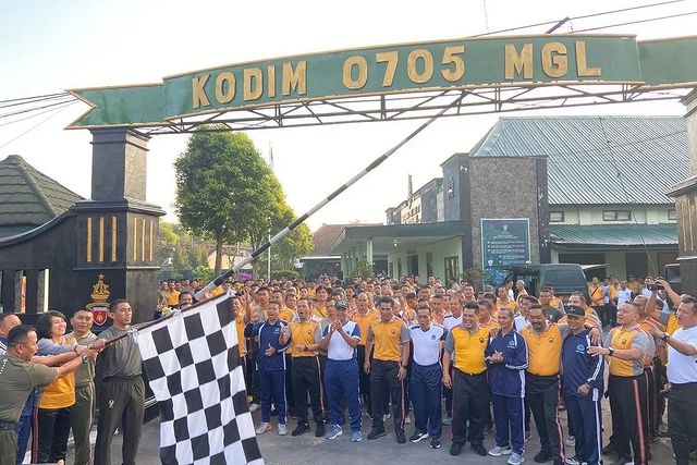 Kapolres Magelang Kota AKBP Yolanda Evalyn Sebayang, didampingi Kapolres Kabupaten Magelang, Dandim 0705, Danyonarmed 3 dan Danyonarmed 11 Kostrad mengatakan tujuan dari olah raga bersama ini untuk meningkatkan sinergitas dan solidaritas antara satuan TNI Polri. (Penkostrad).