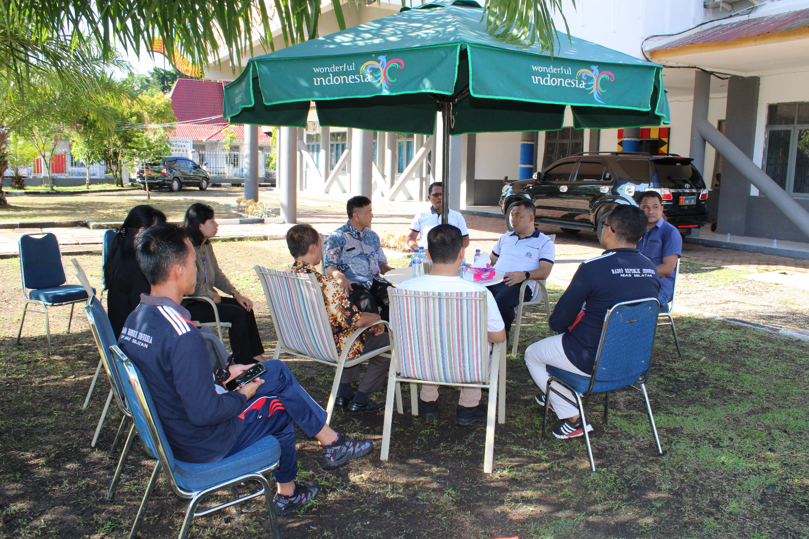 Kepala Stasiun LPP RRI Gunungsitoli Ir. Abdul Gafar Zakaria didampingi oleh KTU RRI Gunungsitoli Sorimuda Siregar, Koorlap SP RRI Nias Selatan Triaman Ndraha dan Ataf RRI Gunungsitoli diterima hangat di Halaman Mako Lanal Nias sambil menikmati udara pagi selepas olahraga pagi dan jalan santai.