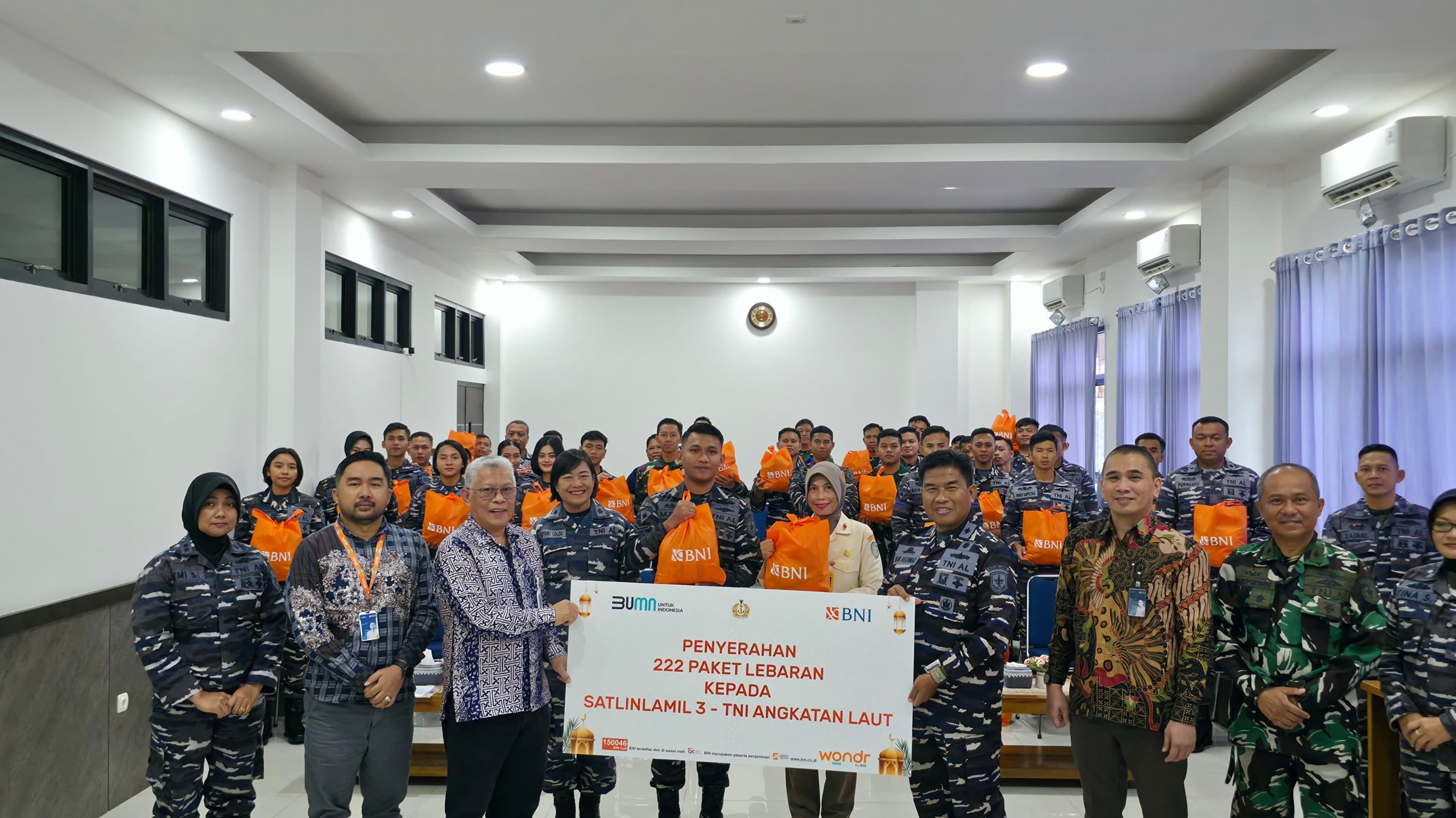 Pada kesempatan tersebut, Komandan Satlinlamil 3 bersama Pimpinan BNI Cabang Makassar menyerahkan secara simbolis Paket Lebaran kepada perwakilan Prajurit dan Pegawai Negeri Sipil (PNS) Satlinlamil 3 sebanyak 222 paket dengan rincian, Personel Mako Satlinlamil sebanyak 55 paket, Prajurit KRI Teluk Amboina-503 sebanyak 96 paket, dan Prajurit KRI Teluk Manado sebanyak 71 paket.