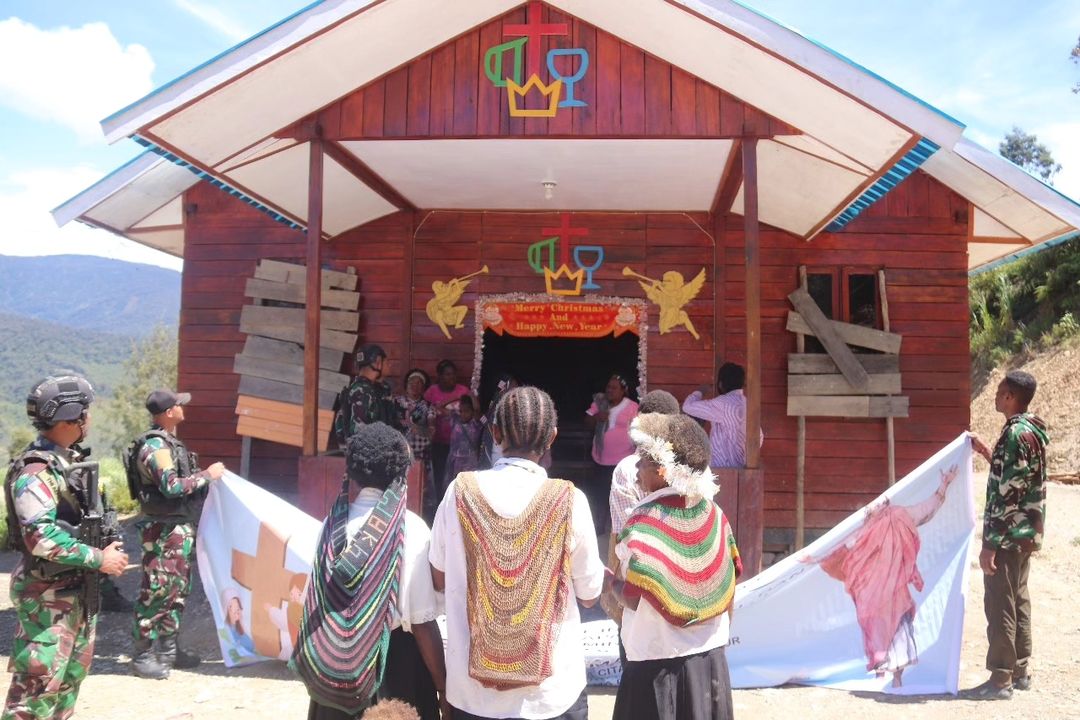 MetropolitanPost.id – Hari Natal semakin dekat, personel Satgas Yonif 330 Kostrad dipimpin Serda Ally Saputra bersama jemaat mendekorasi dan mempercantik Gereja Kemah Injil Indonesia (GKII) di Kampung Bajemba, Distrik Sugapa, Kab. Intan Jaya, Papua Tengah, Kamis (21/12/2023).